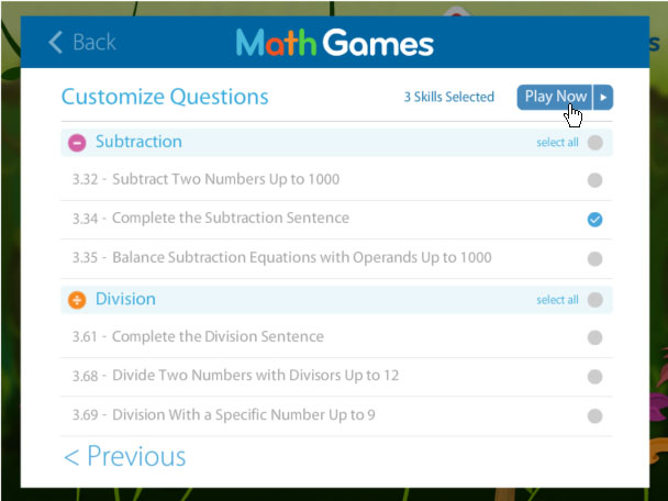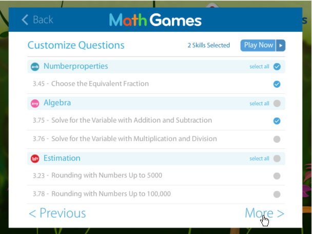 Your game will now begin. As you successfully complete and progress through the skills, it will only play the skills you specified.
