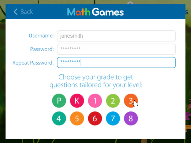 Setup a username and password and select your prefered grade.